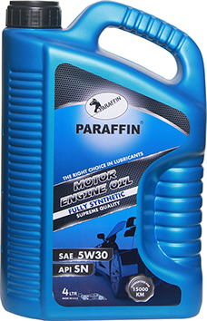 PARAFFIN FULLY SYNTHETIC MOTOR ENGINE OIL SAE5W-30 is synthetic blend power-driven multi-grade engine oil. It is formulated to provide improved oxidation resistance, deposit control, wear protection and better low temperature performance.