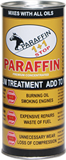 PARAFFIN ENGINE TREATMENT IS Colloidal solid lubricant suspension based on molybdenum sulfide (MoS2) in mineral oil. The product forms a high-load lubricating film on all rubbing and sliding surfaces. This in turn reduces friction, providing for smoother operation of assemblies and greater engine economy. Tested for turbochargers and catalytic converters